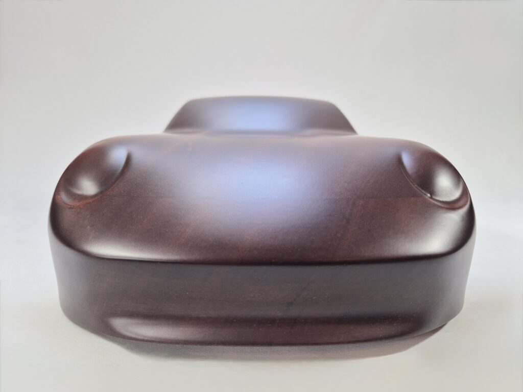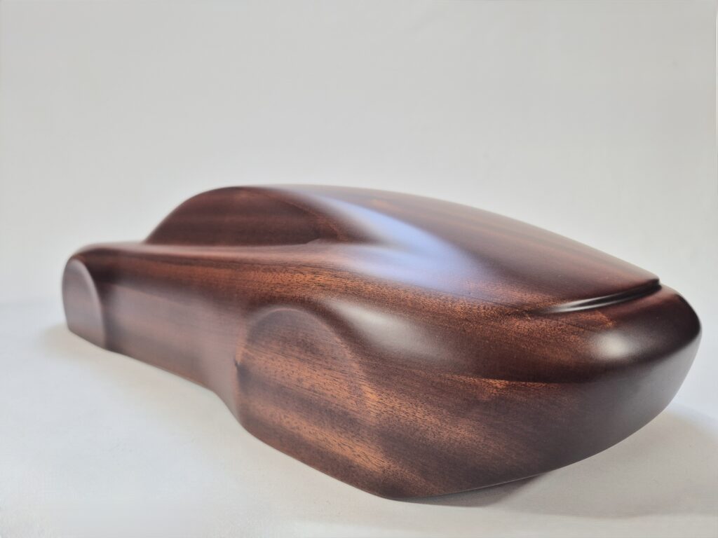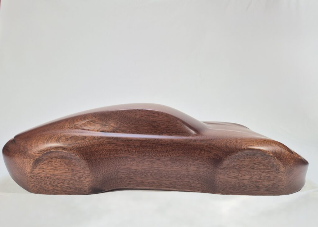 L’Intemporelle 2.0 est une sculpture en bois inspirée de la Porsche 992 par David Voisin ébéniste sculpteur.